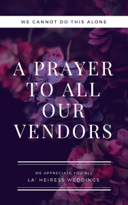 Today, I pray for all our vendors that have made it happen for every single one of our events… That your days will be fruitful, may you enjoy blessings to your heart’s content. May your heart be joyful always. May you enjoy days as beautiful as flowers in spring and nights lovely and restful.