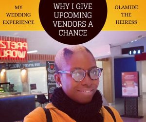 It was during this period that I made up my mind to always give upcoming vendors a chance to prove themselves before writing them off. I wasn’t going to judge based on the number of instagram followers they had because if my very first set of clients did not give me a chance, I won’t be where I am today. And even though, I am not where I want to be yet, I am sure that I am gradually getting there.